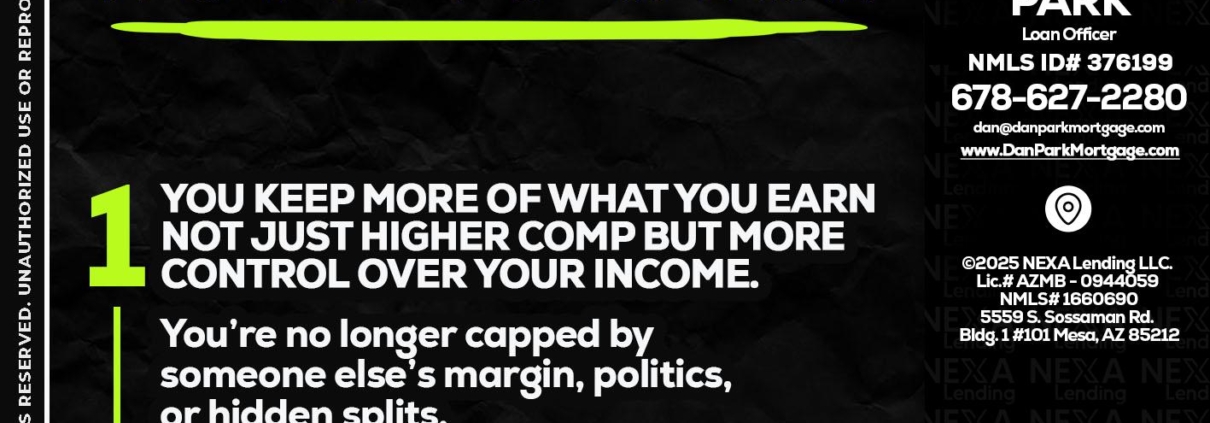 Hi, my name is Dan Park. I’m a Loan Officer with NEXA Lending LLC., offering personalized mortgage solutions, fast customized quotes, great rates and service with integrity.
