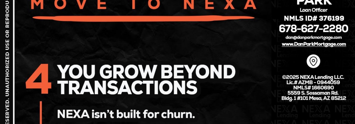 Hi, my name is Dan Park. I’m a Loan Officer with NEXA Lending LLC., offering personalized mortgage solutions, fast customized quotes, great rates and service with integrity.