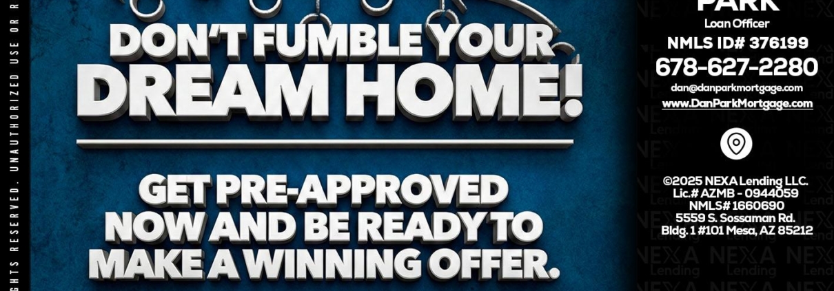 dont fumble - Dan Park -Mortgage Loan OriginatorHi, my name is Dan Park. I’m a Loan Officer with NEXA Lending LLC., offering personalized mortgage solutions, fast customized quotes, great rates and service with integrity.