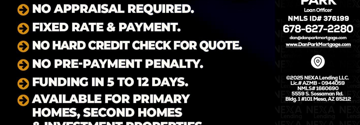 Hi, my name is Dan Park. I’m a Loan Officer with NEXA Lending LLC., offering personalized mortgage solutions, fast customized quotes, great rates and service with integrity.