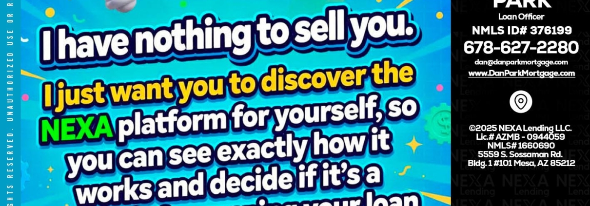 Hi, my name is Dan Park. I’m a Loan Officer with NEXA Lending LLC., offering personalized mortgage solutions, fast customized quotes, great rates and service with integrity.