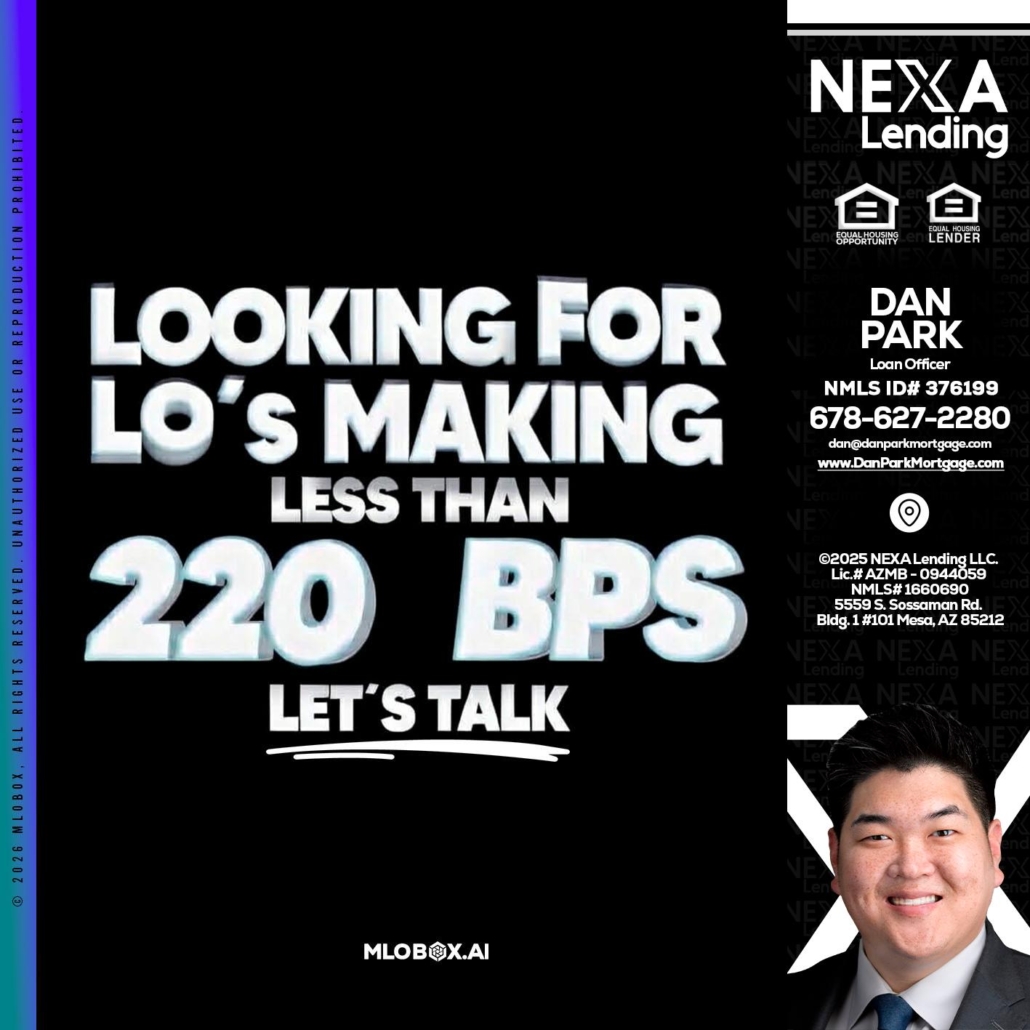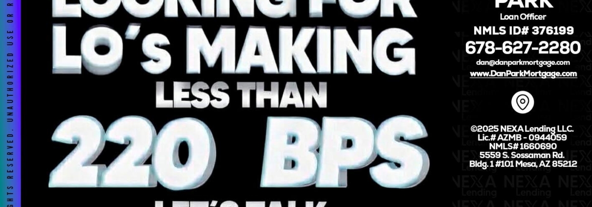 Hi, my name is Dan Park. I’m a Loan Officer with NEXA Lending LLC., offering personalized mortgage solutions, fast customized quotes, great rates and service with integrity.