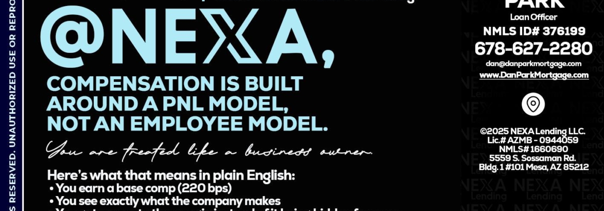 Hi, my name is Dan Park. I’m a Loan Officer with NEXA Lending LLC., offering personalized mortgage solutions, fast customized quotes, great rates and service with integrity.