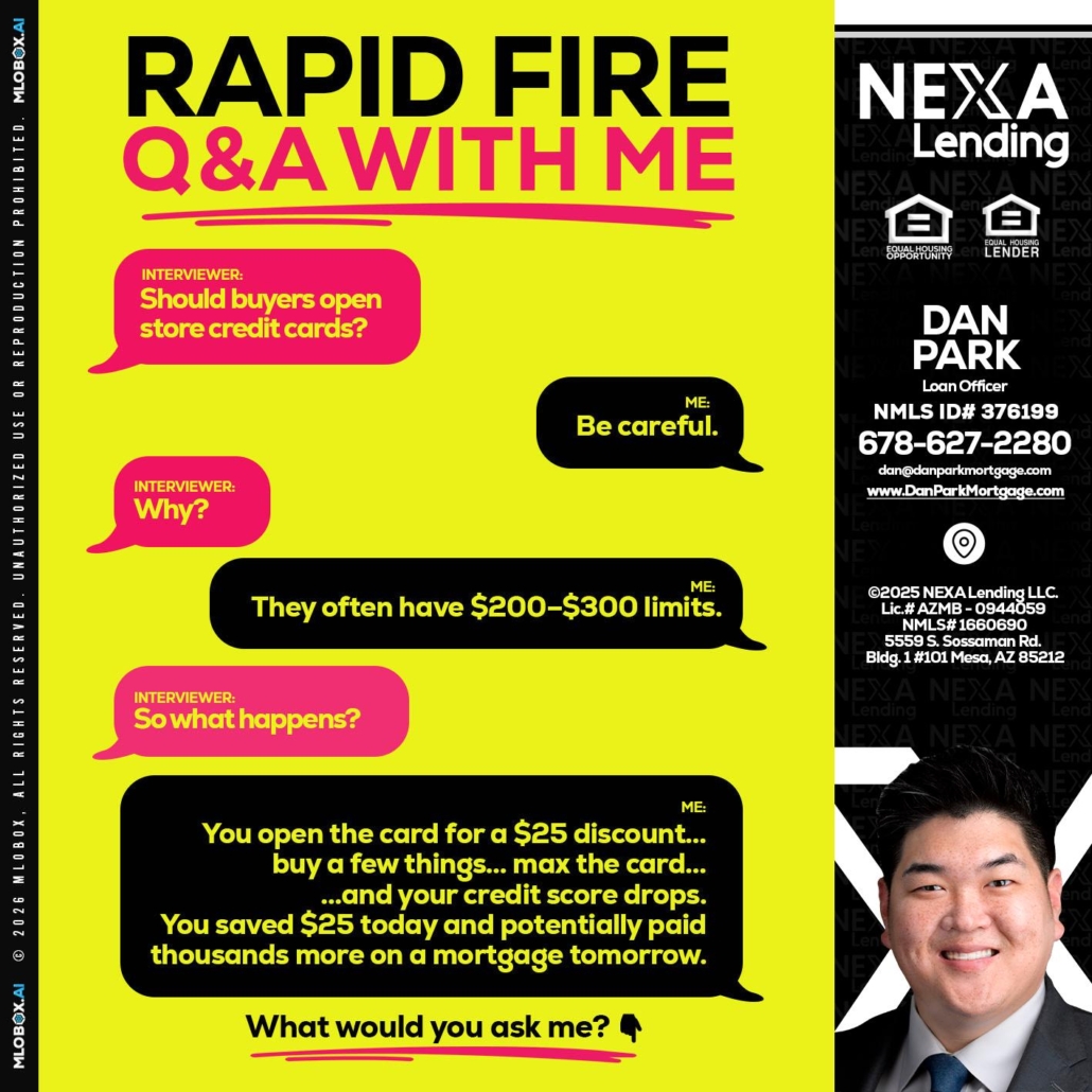 RAPID FIRE Q&A - Dan Park -Mortgage Loan OriginatorHi, my name is Dan Park. I’m a Loan Officer with NEXA Lending LLC., offering personalized mortgage solutions, fast customized quotes, great rates and service with integrity.