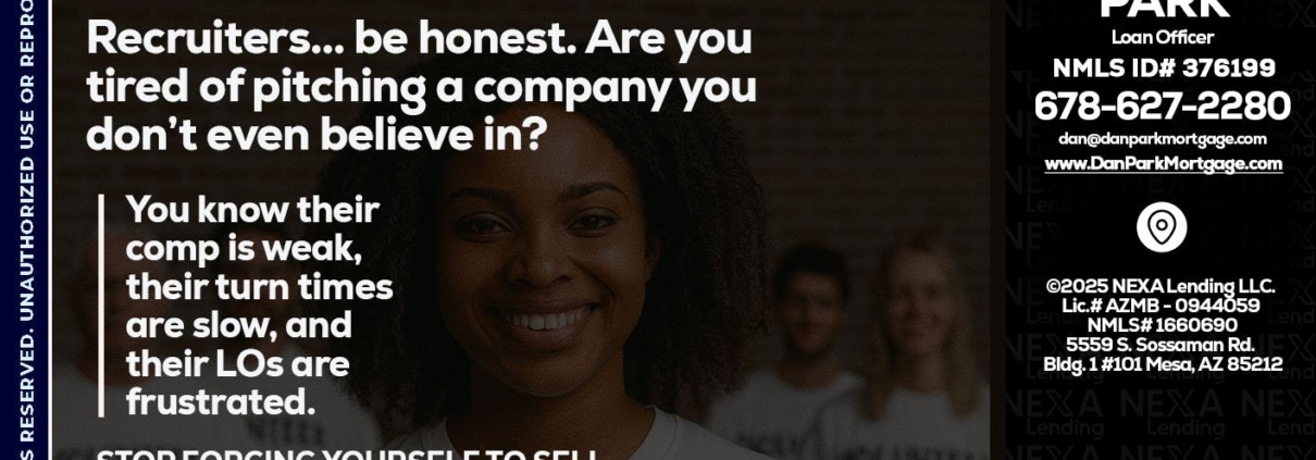 Hi, my name is Dan Park. I’m a Loan Officer with NEXA Mortgage LLC., offering personalized mortgage solutions, fast customized quotes, great rates and service with integrity.