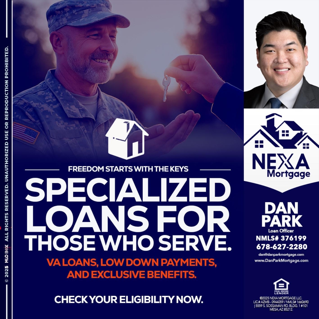 Hi, my name is Dan Park. I’m a Loan Officer with NEXA Mortgage LLC., offering personalized mortgage solutions, fast customized quotes, great rates and service with integrity.