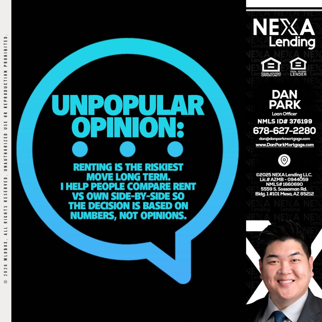 Hi, my name is Dan Park. I’m a Loan Officer with NEXA Lending LLC., offering personalized mortgage solutions, fast customized quotes, great rates and service with integrity.