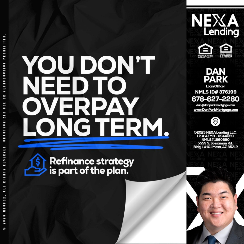 Hi, my name is Dan Park. I’m a Loan Officer with NEXA Lending LLC., offering personalized mortgage solutions, fast customized quotes, great rates and service with integrity.